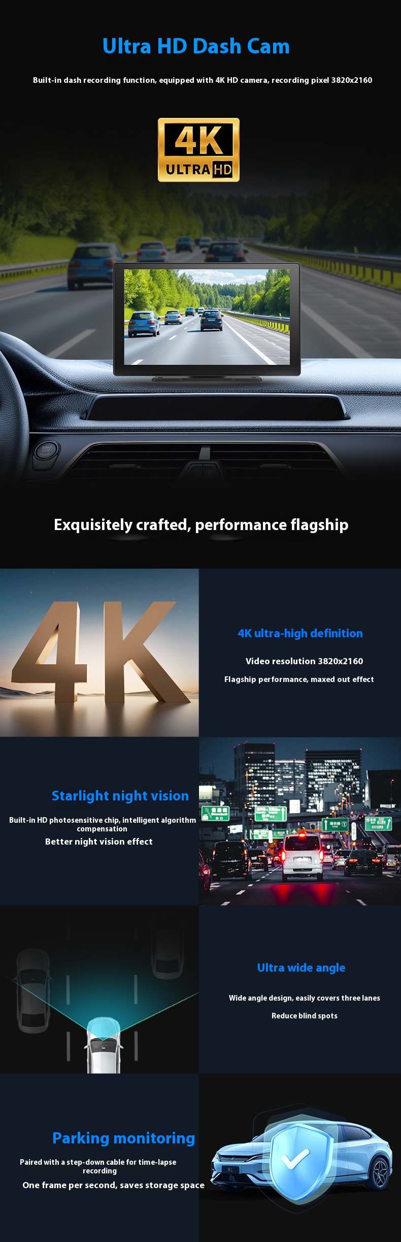 Specifications: 9-inch smart screen (4K with front and back Records)