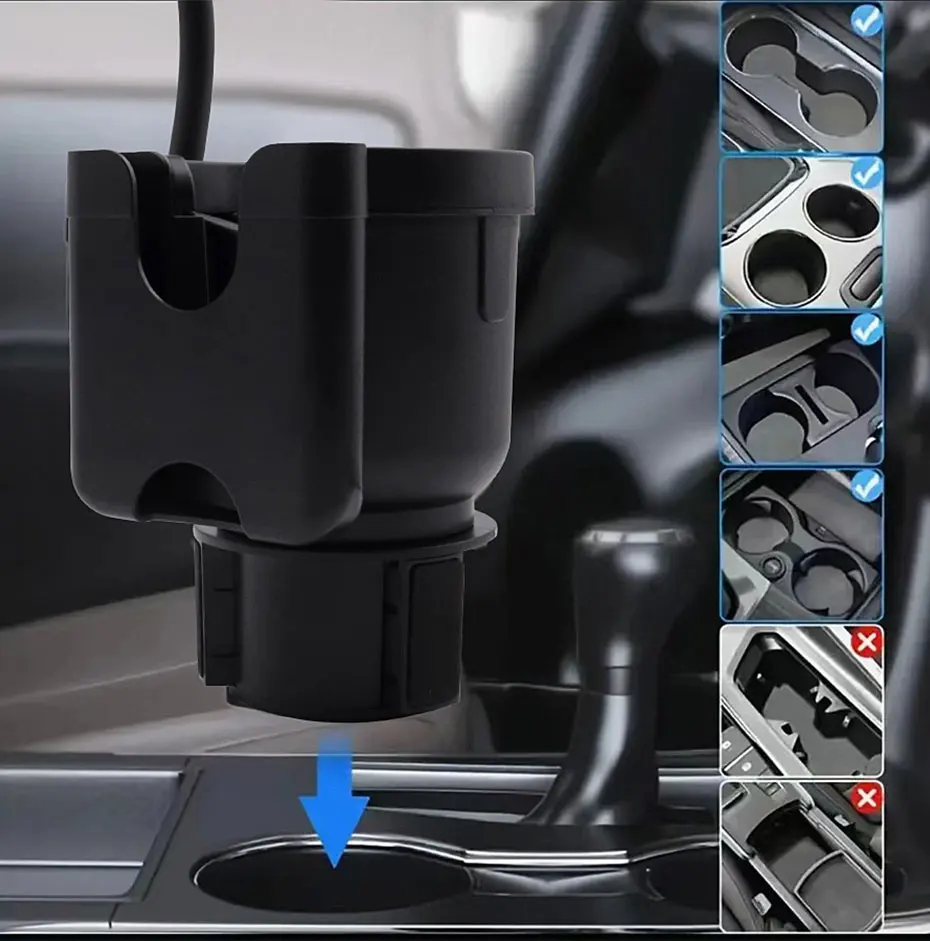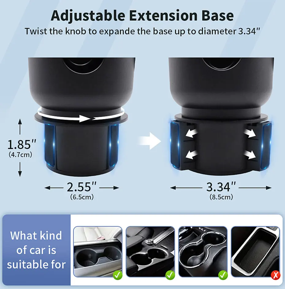 Blalion upgraded car cup holder expander multifunction 3 in 1 phone mount stand with adjustable rotatable base car storage clip