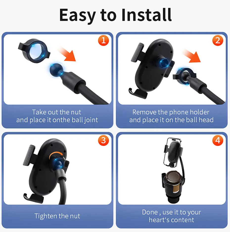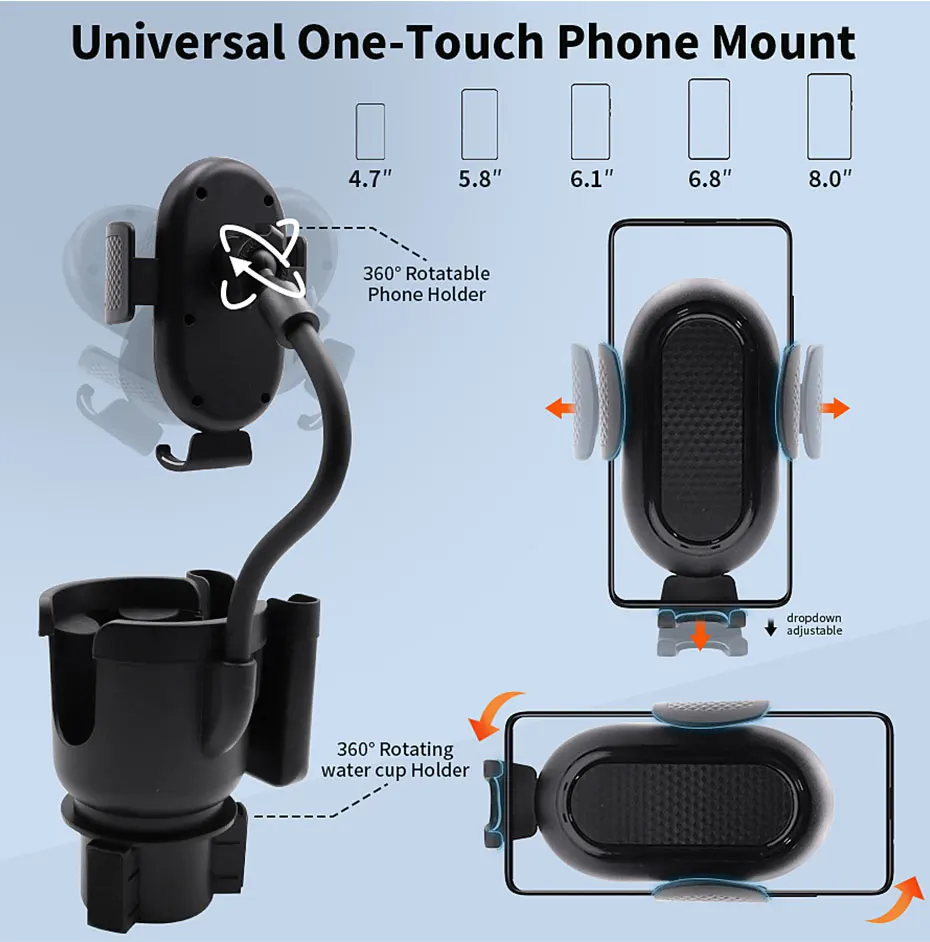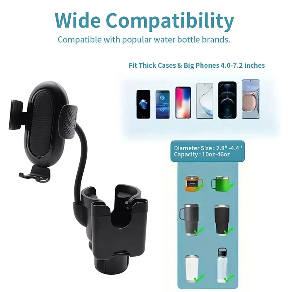 1.3-in-1 Multifunctional adjustable holder.Can be used as water cup holder or phoner holder.