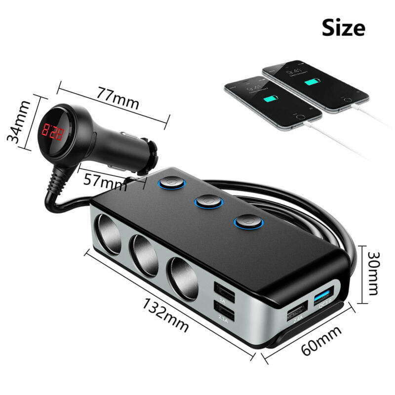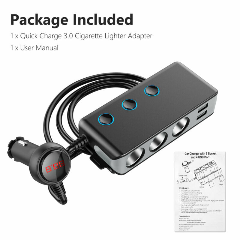 Cigarette lighter adapter 120w 12v 3 socket cigarette lighter splitter 4 usb charging ports independent switch car splitter adapter for all car devices black