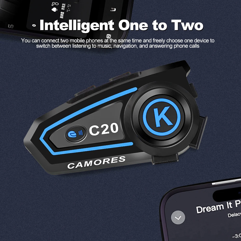 *That this headset does not include intercom function, you can connect two mobile phones at the same time