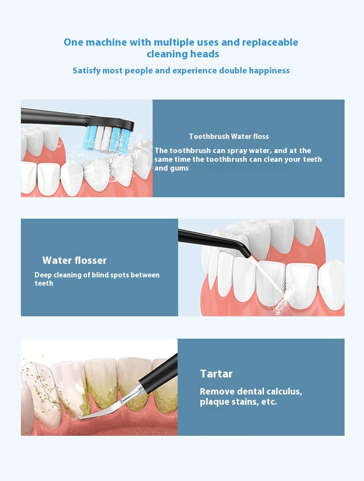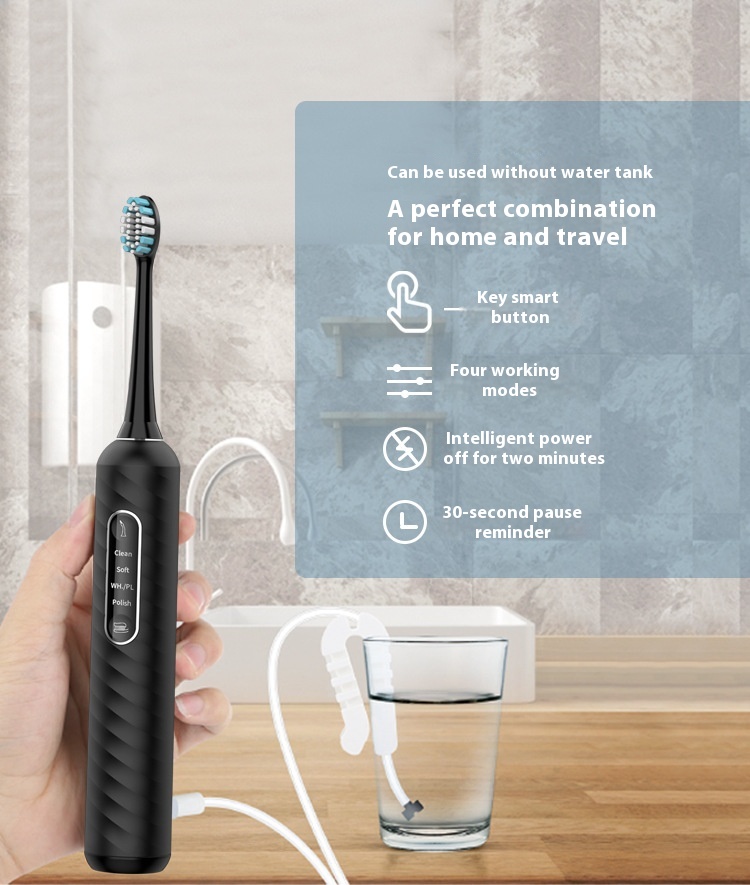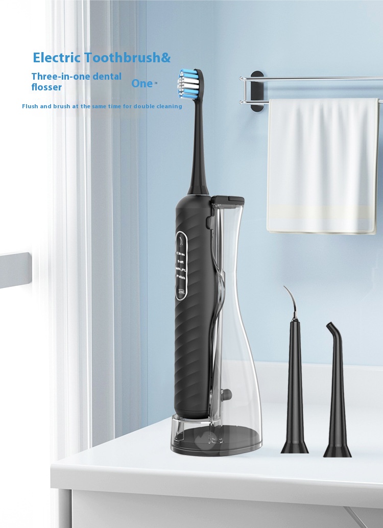 Color: cy2305b black - multifunctional oral flusher two-in-one toothbrush