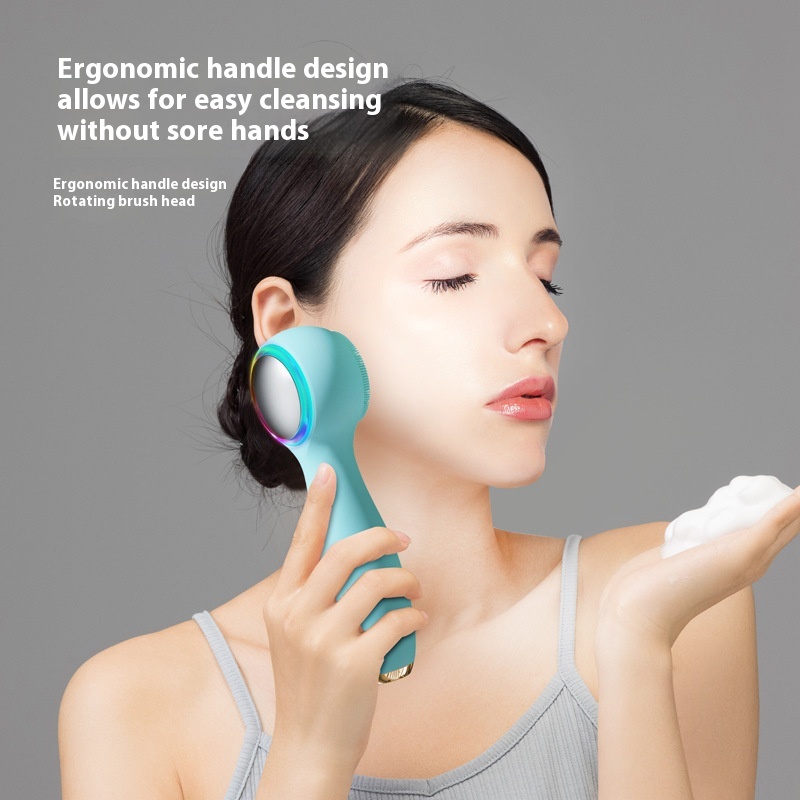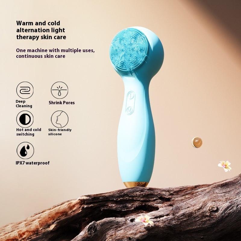 Color: light blue, specifications: vibration facial cleaner - household red blue light cold and hot compress electric facial cleaner