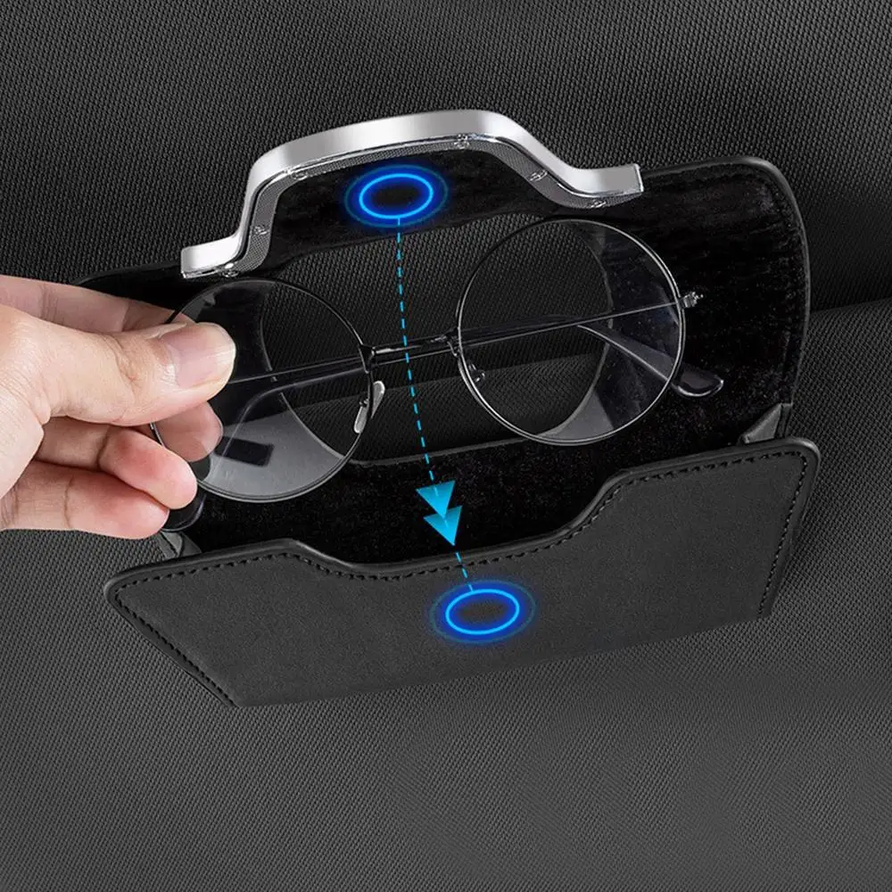 Color name: black, ships from: china - car visor sunglass case auto sun visor organizer box leather vehicle storage tool for cards keys lipsticks small wallets