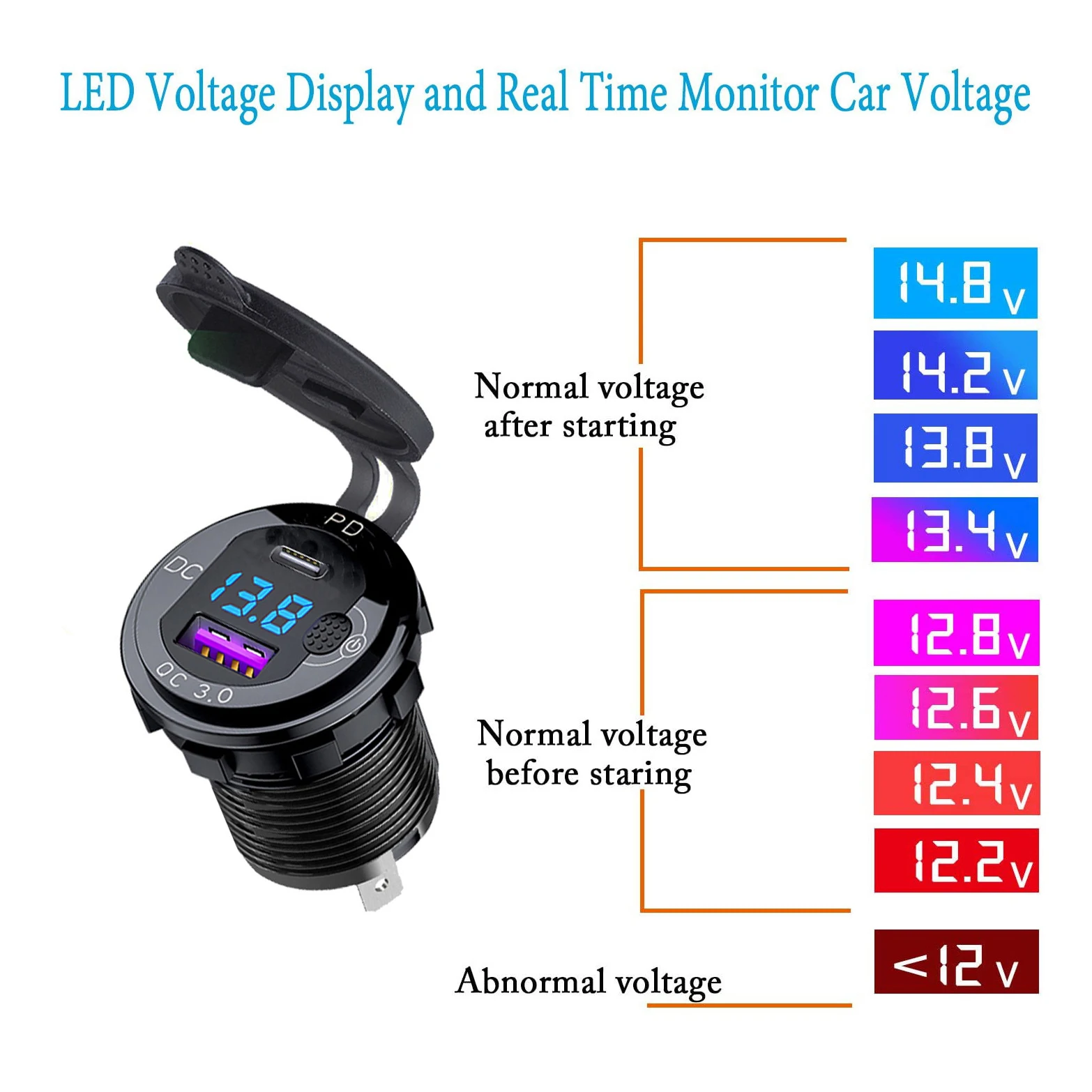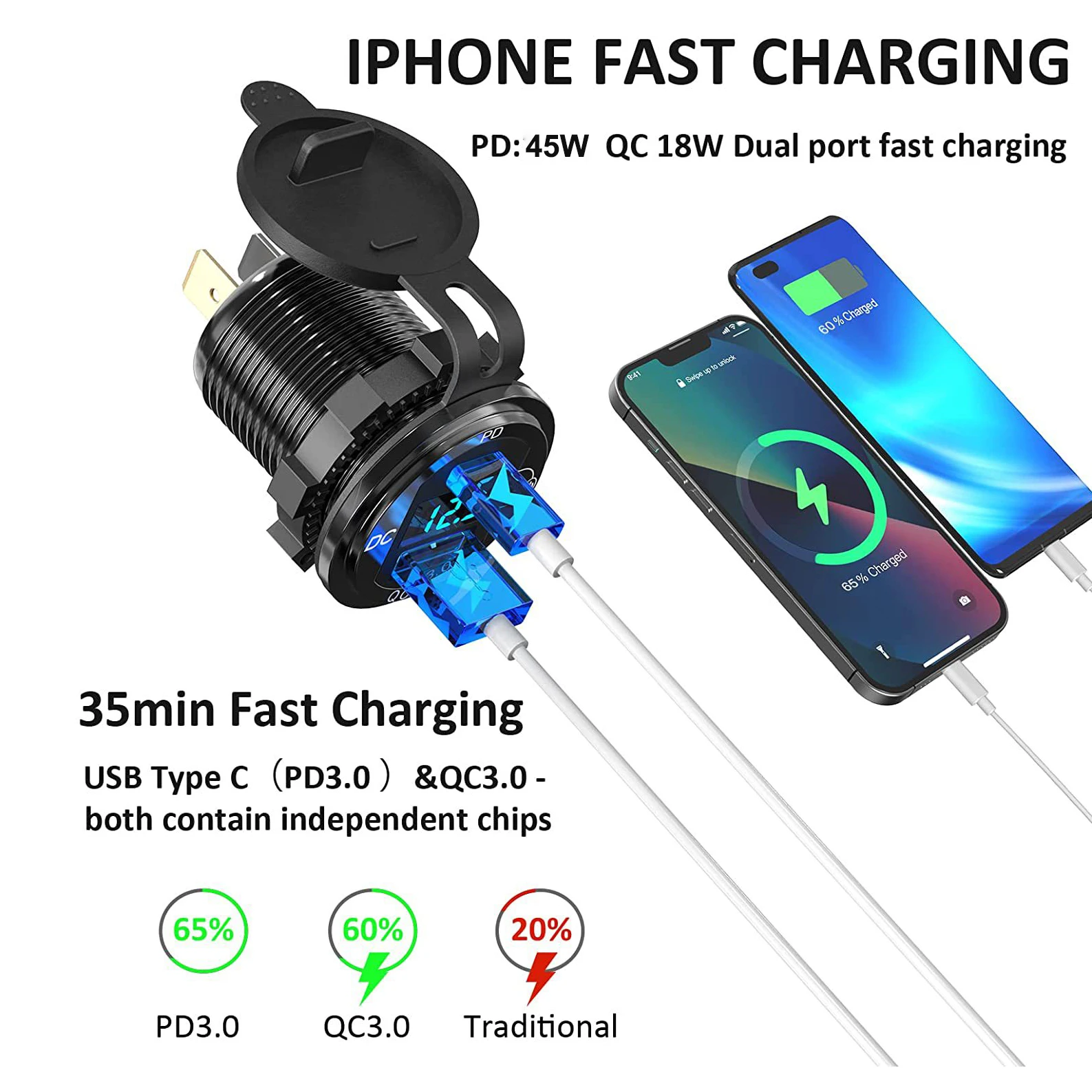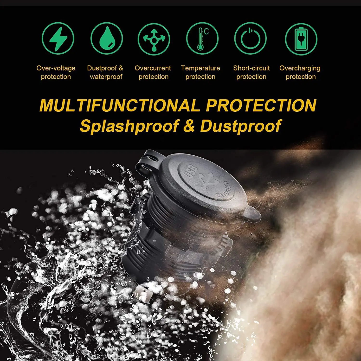 【Wide Compatibility】 This USB C Car Charger Socket comes with removable waterproof cover, waterproof and dust-proof, It can be used even in harsh environments. Fits for all 12V-24V vehicles, marine, ATV, motorcycle, truck, golf cart, RV, boat, suv, etc.