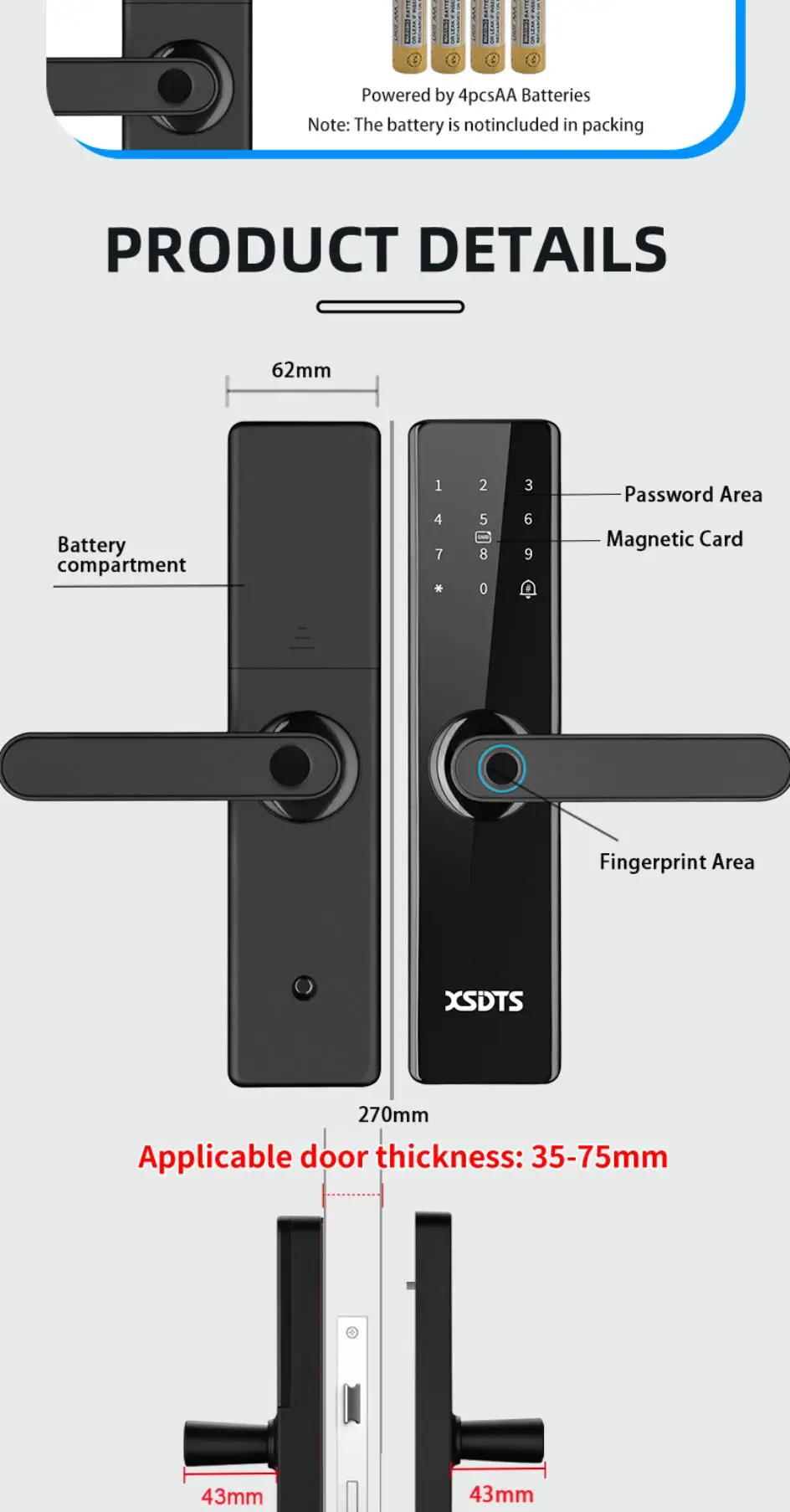 Fit Door Thickness: 40-70cm