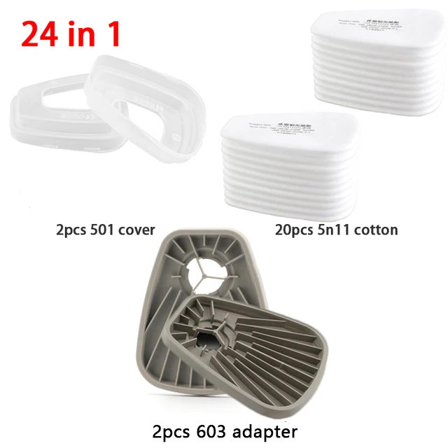 Color: yellow - 4/6/14/24 in 1 set 603/5n11 filter 501 cotton cover respirator spray dust-proof anti-particles used for 6200/7502/6800 gas mask