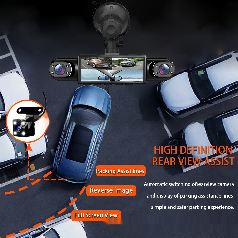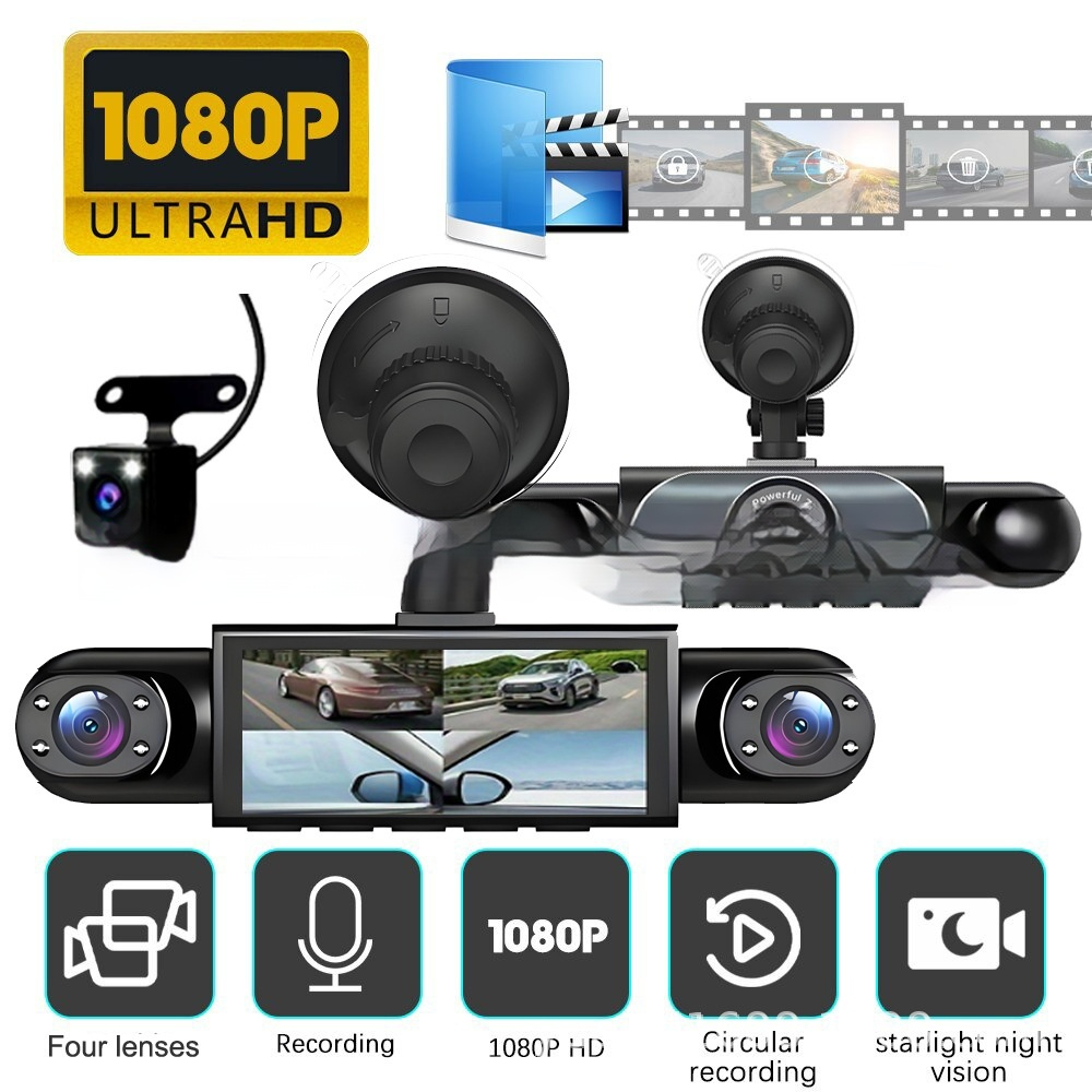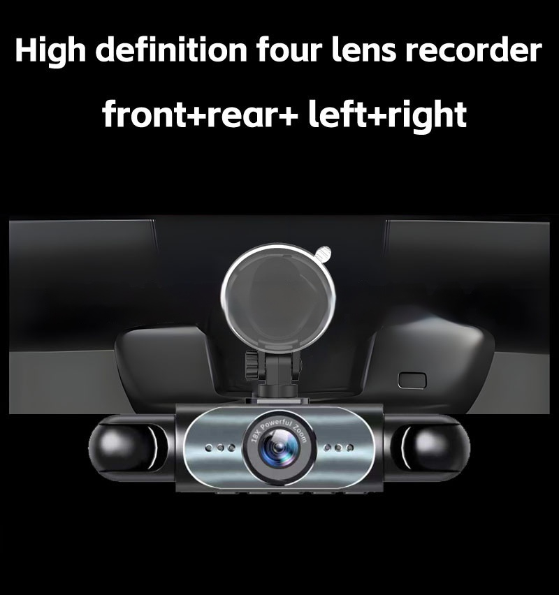 Four-lens surveillance dash cam hd with rearview camera