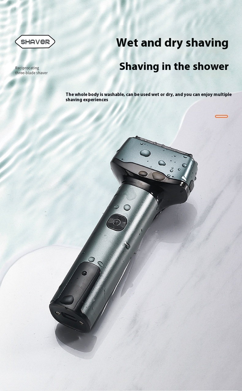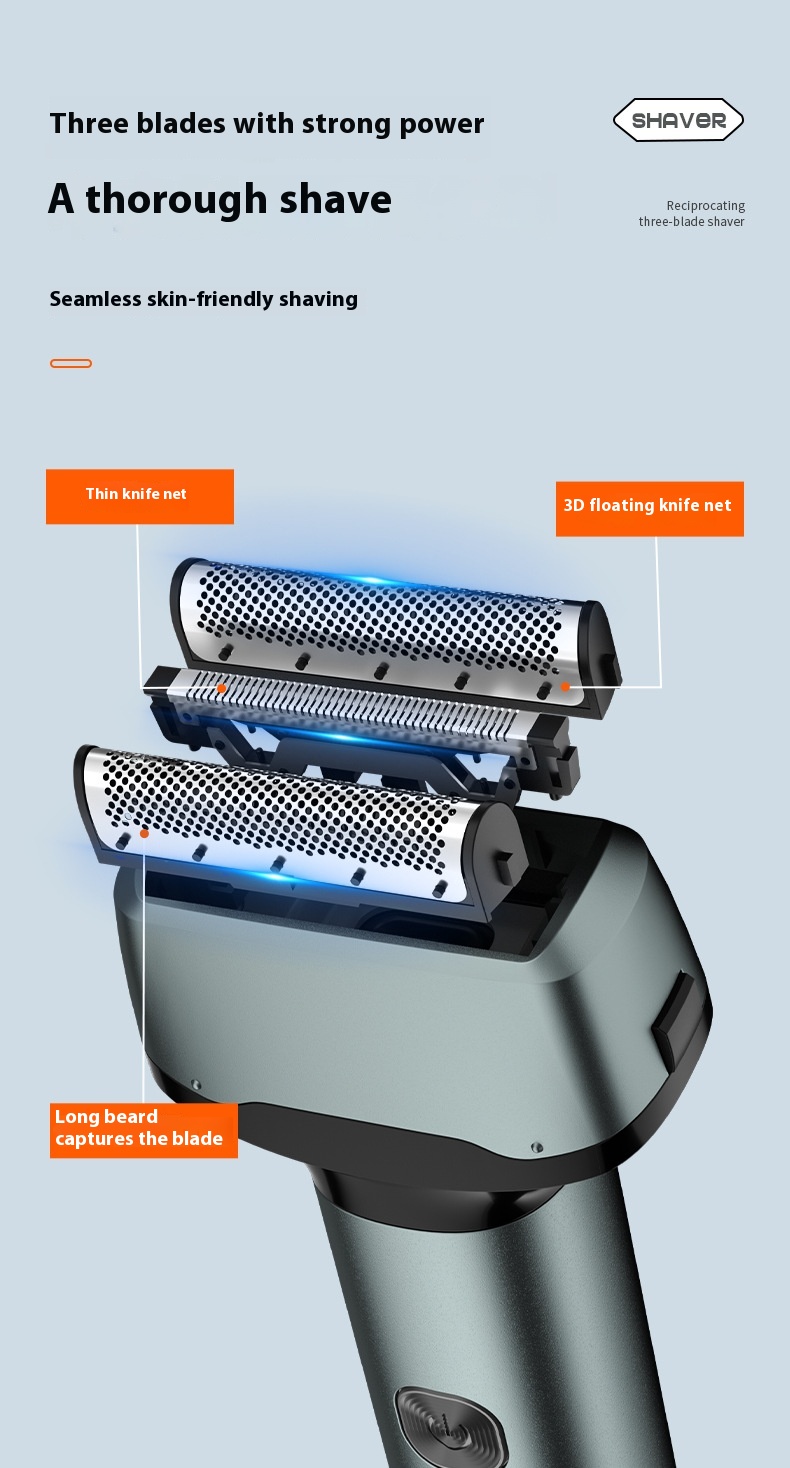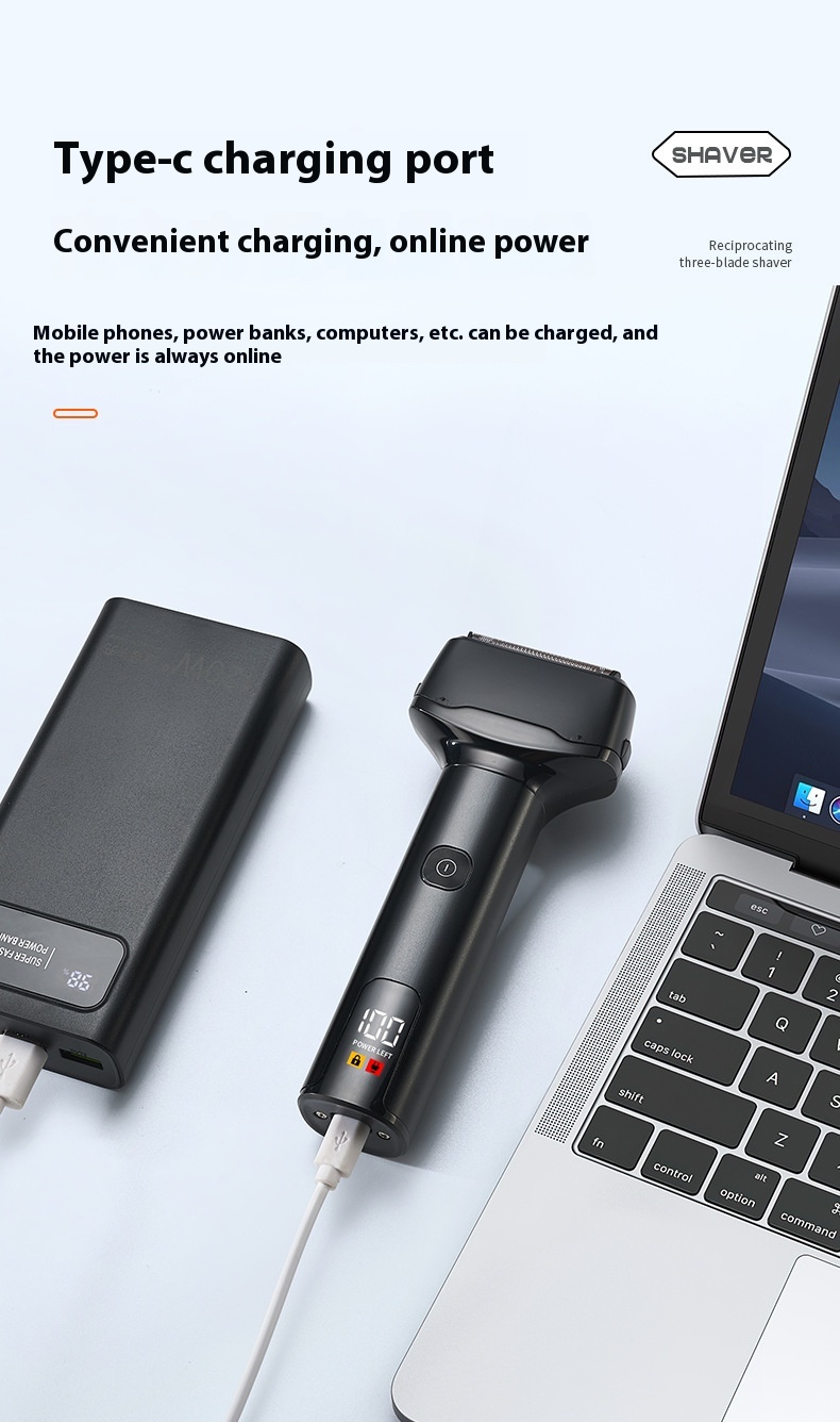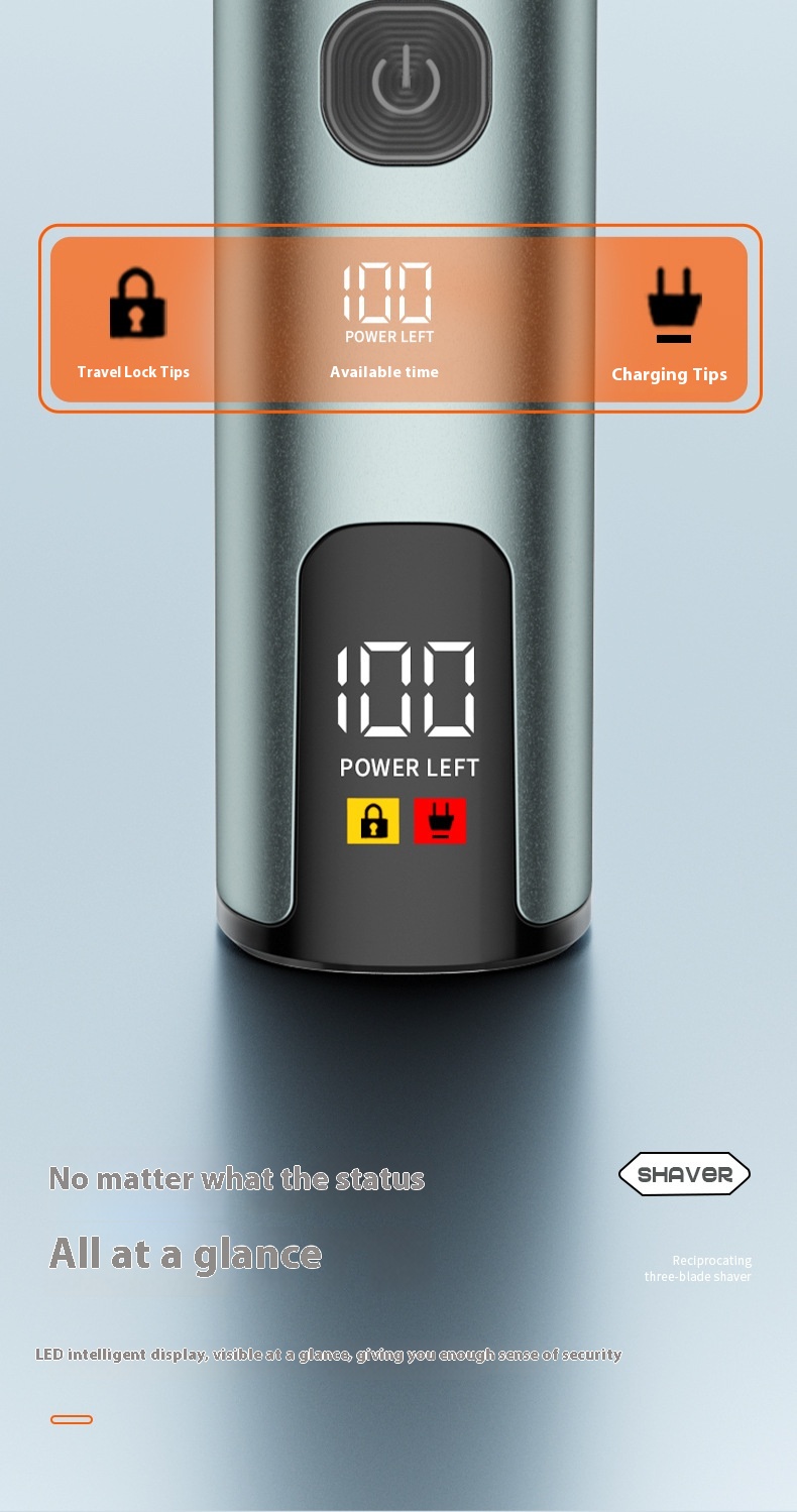 Reciprocating digital display three cutter head electric shaver