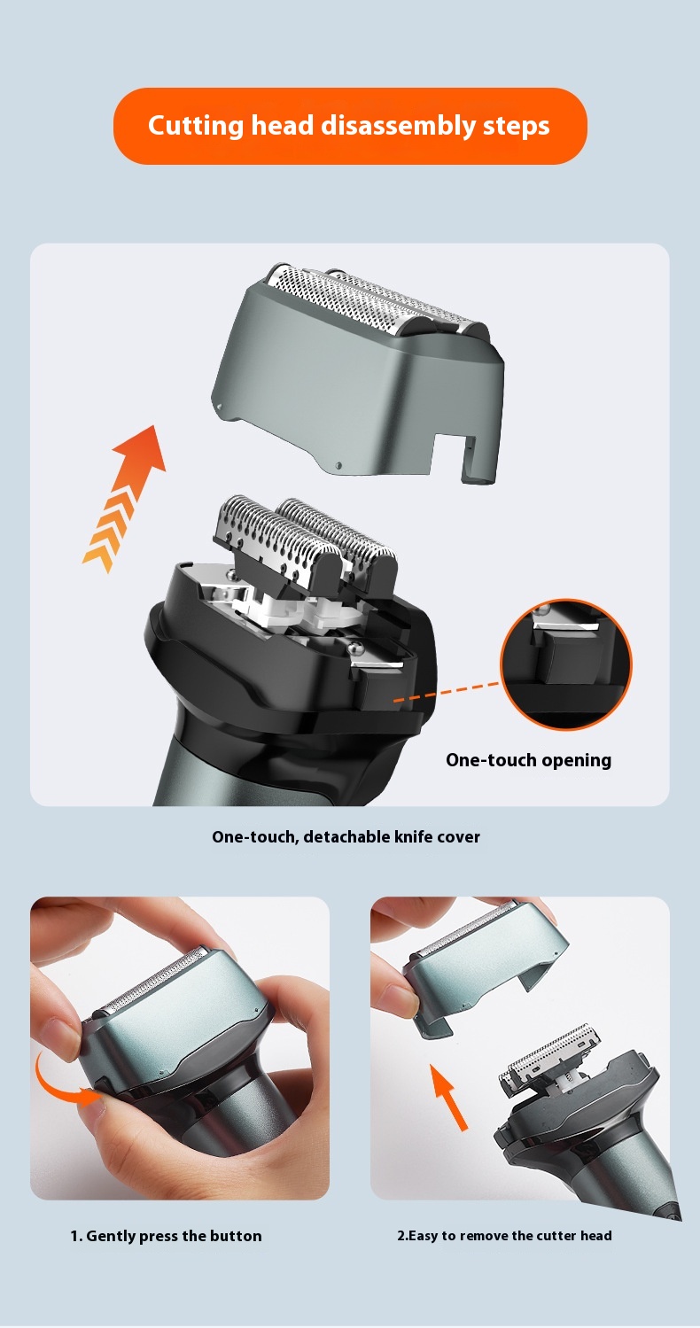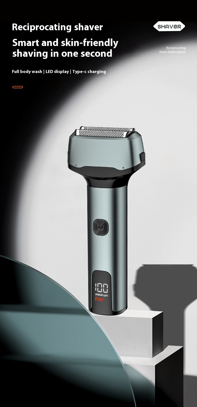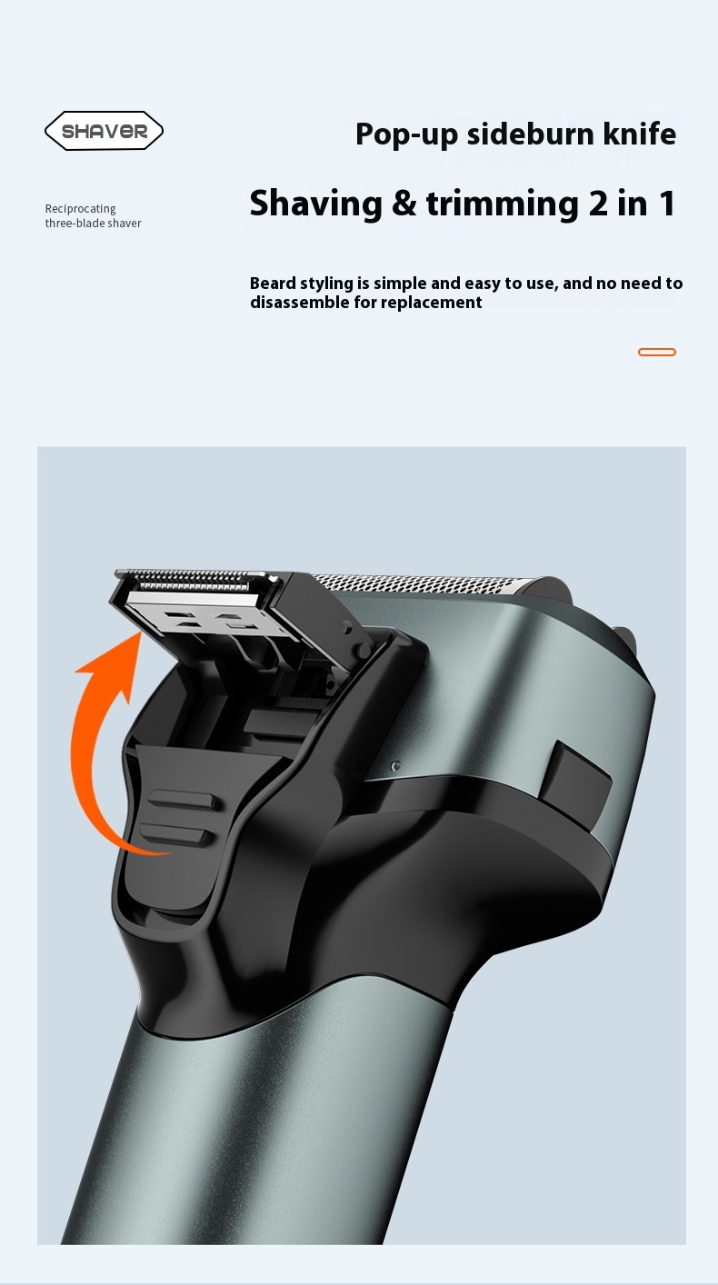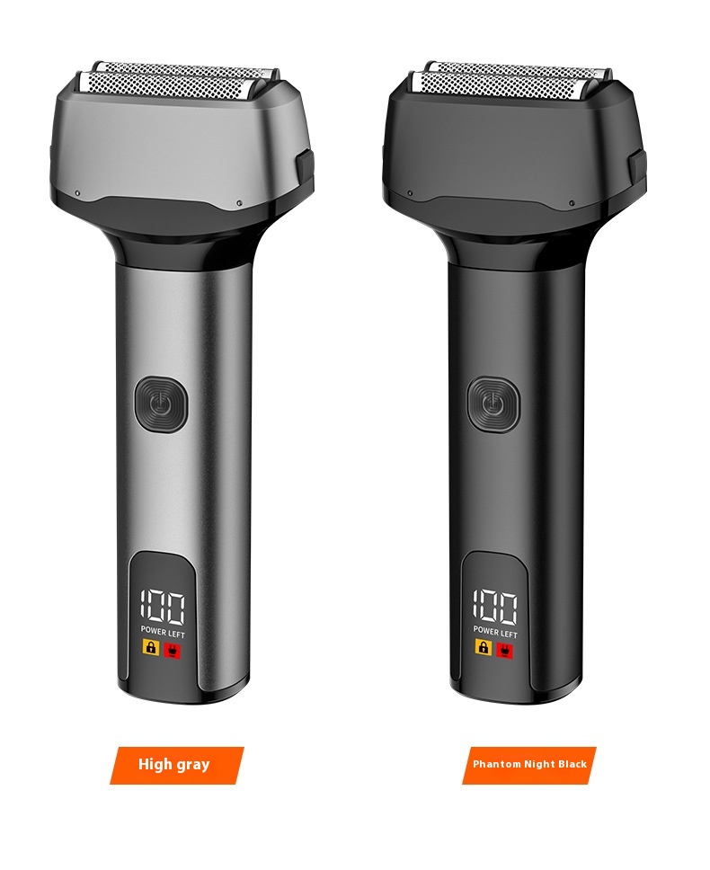 Reciprocating digital display three cutter head electric shaver