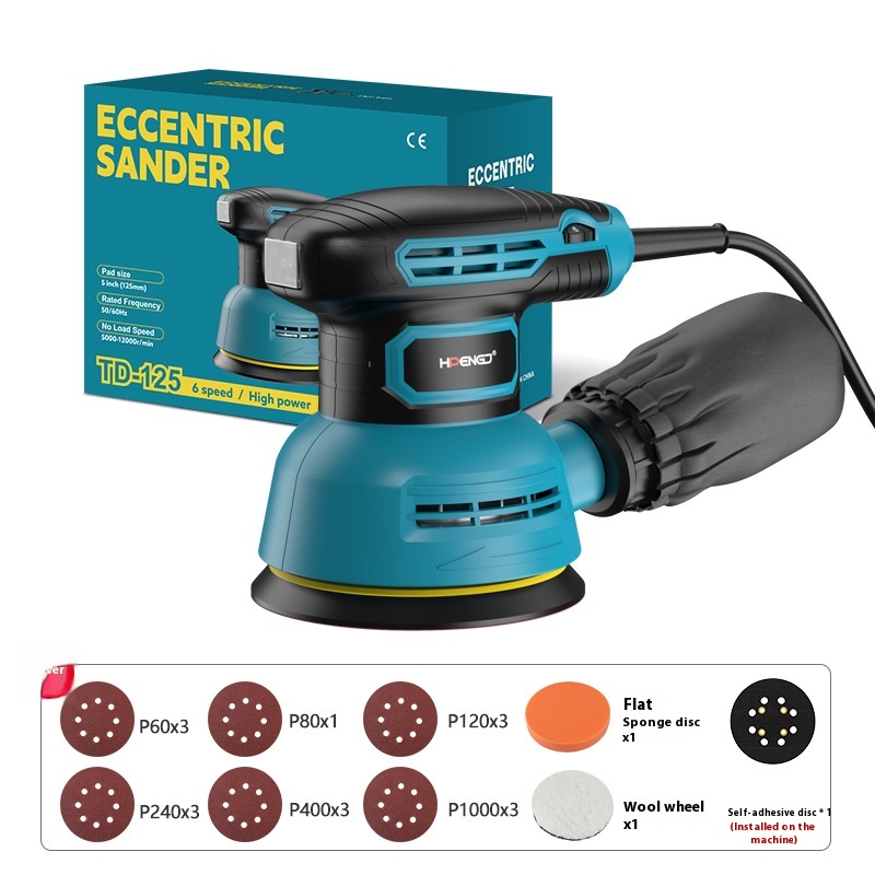 Specification: eccentric disc sander (Makita Blue) +16 sheets of sandpaper+sponge wool
