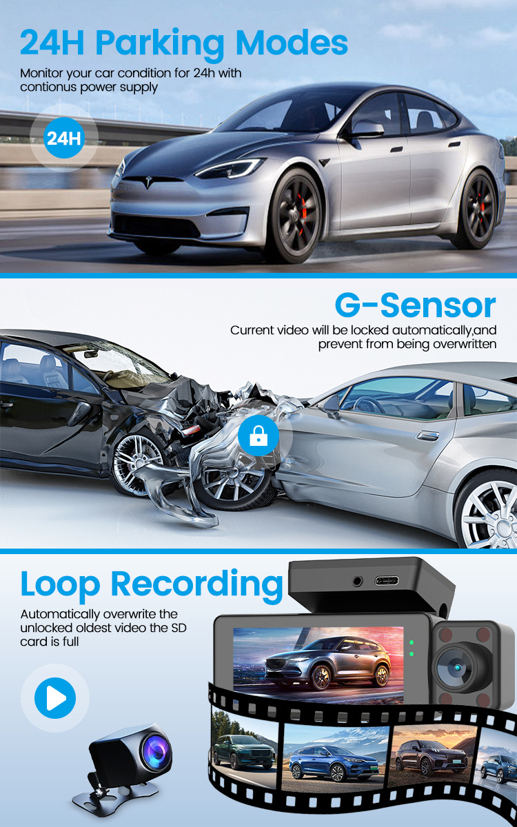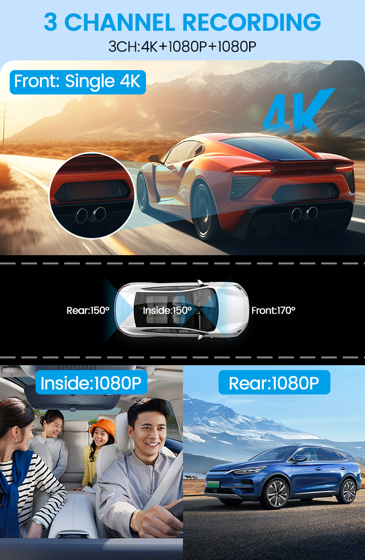 Color classification: 4K ultra-clear mobile phone internet parking surveillance front and rear car (three records) GPS,