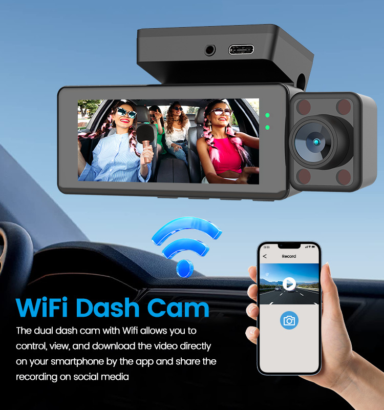 Three-record wifi interconnection 4k hd night vision driving recorder