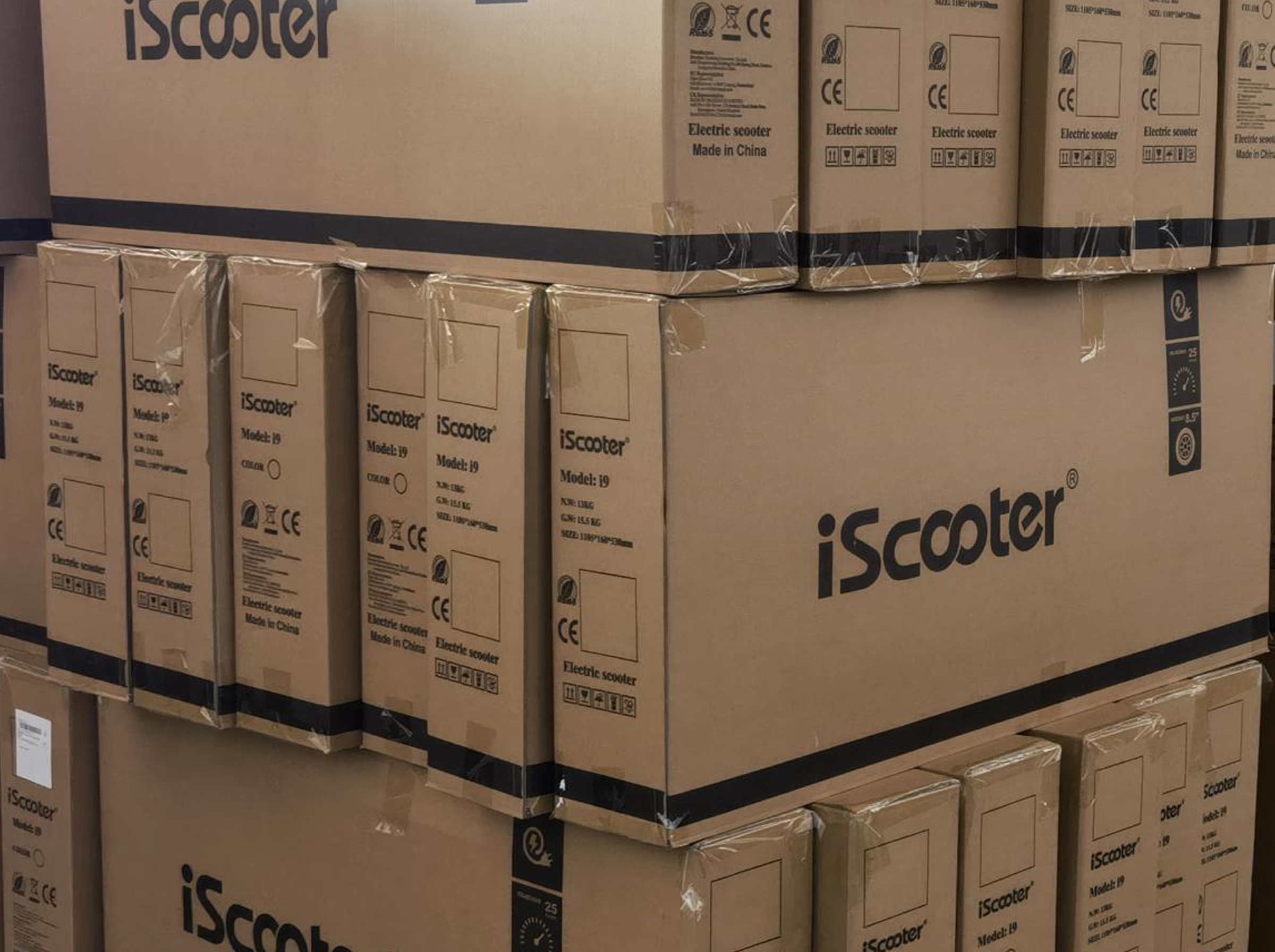 There's a total of 5 pallets available, each containing 18 units of the iScooter i9 electric scooter (brand new, sealed, with international warranty and export paperwork ready). Available for purchase: the entire lot of 5 pallets containing a total of 90 x iScooter i9 electric scooter. These are genuine iScooter products, not replicas. This bulk stock is perfect for large-scale projects, wholesale purchases or resellers. Shipping from Mainland China.